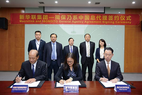 3月27日,集團與日本兵庫縣手延素面協(xié)同組合、高田商店株式會社簽訂代理協(xié)議,正式成為揖保乃系(手延面)中國大陸地區(qū)總代理商。揖保乃系(手延面)是日本第一面條品牌,有130年的發(fā)展歷史。集團董事局主席兼總裁傅軍、高級副總裁兼酒業(yè)與食品事業(yè)部總裁馮建軍、貿(mào)易部總監(jiān)胡暉等出席簽約儀式。