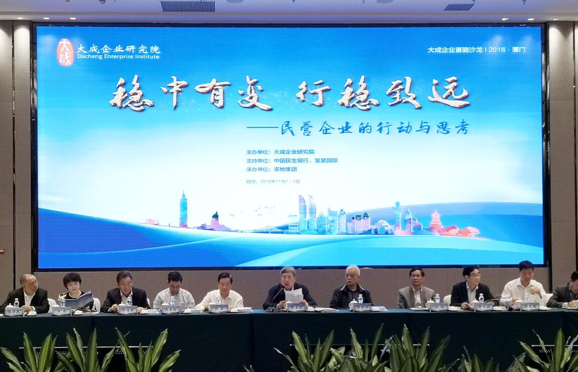 11月1日—2日,由大成企業(yè)研究院主辦的2018大成民營企業(yè)首腦沙龍?jiān)趶B門泰地萬豪酒店舉行。來自全國的近百位民營企業(yè)家圍繞“穩(wěn)中有變,行穩(wěn)致遠(yuǎn),民營企業(yè)的行動與思考”這一主題探討交流了新形勢下民營經(jīng)濟(jì)發(fā)展之路。傅軍總裁應(yīng)邀出席本次沙龍,并作為企業(yè)家代表作了重點(diǎn)發(fā)言。