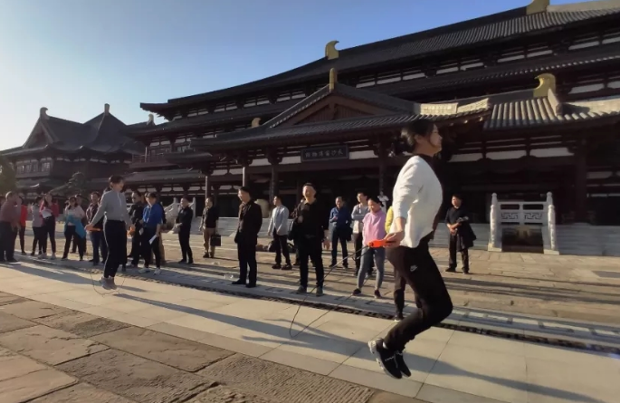 在湖湘名人館前,省工商聯工會會員們進行了社會主義核心價值觀知識搶答賽。他們搶答踴躍,優勝者優先進入飛行影院體驗。跳繩和拔河兩項比賽則同時進行,現場一次次響起熱烈的掌聲和歡呼聲,將活動不斷推向新的高潮。