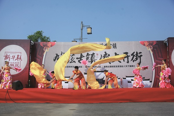 7月30日8:08,一場極具東方韻味的開場舞拉開了集團首個古鎮項目——蕪湖鳩茲古鎮開街的序幕。蕪湖市委常委、宣傳部長段玉嘉,蕪湖鳩江區委書記唐開強等當地政府領導, 中國旅游協會副會長、新華聯集團副總裁兼新華聯不動產總經理蘇波及集團多位高層管理人員,鳩茲古鎮商戶代表和媒體記者等出席開街儀式,與從四面八方趕來的蕪湖市民共同見證了開街盛況。
