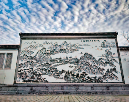 在蕪湖新華聯鳩茲古鎮中,矗立著一座名為《天下徽商,興于鳩茲》的大鐵畫。大鐵畫面積115.91平方米,長15.77米,高7.35米,由已故著名鐵畫老藝人儲炎慶的女兒、中國工藝美術大師儲金霞率領多位鐵畫大師打造而成,于2017年1月1日正式亮相鳩茲古鎮。世界紀錄協會認證官現場認證,這是一幅“世界最大的鐵畫”,也是唯一一幅室外裸露的大型鐵畫。這幅大鐵畫用圖畫的形式,講述著徽商從徽州村落走出大山,沿青弋江順流而下來到蕪湖,在這里興業發展的經歷。