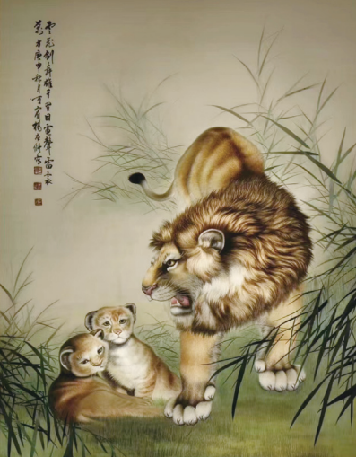 長沙銅官窯古鎮(zhèn)繡珍閣,是一所現(xiàn)當(dāng)代刺繡藝術(shù)收藏博物館。在繡珍閣湘繡展廳內(nèi),展示著一批湘繡的大師絕響、工藝絕品、當(dāng)世孤品,足以代表現(xiàn)當(dāng)代刺繡藝術(shù)、刺繡工藝的最高水平。如湘繡大師周金秀的作品《雄獅幼獅圖掛屏》,就是一幅將傳統(tǒng)針法與創(chuàng)新針法完美結(jié)合的當(dāng)代湘繡巔峰之作。這幅作品采用刺繡獅虎毛的鬅毛針技法,細(xì)膩刻畫了威猛雄獅與幼獅柔情呢喃時(shí)的意趣。湘繡還講究形象生動(dòng)逼真,色彩豐富鮮艷,針法迷幻多變。如李艷大師設(shè)計(jì)、繡制的《愛·系列》8幅作品,全面展示了湘繡平繡技法和亂針繡技法的特質(zhì)。作品以細(xì)膩的情感、飽滿的構(gòu)圖描繪出動(dòng)物母子、父子、夫妻、家庭相親相愛的場景,以精妙絕倫的神韻、和諧溫馨的畫面烘托出愛的氛圍。